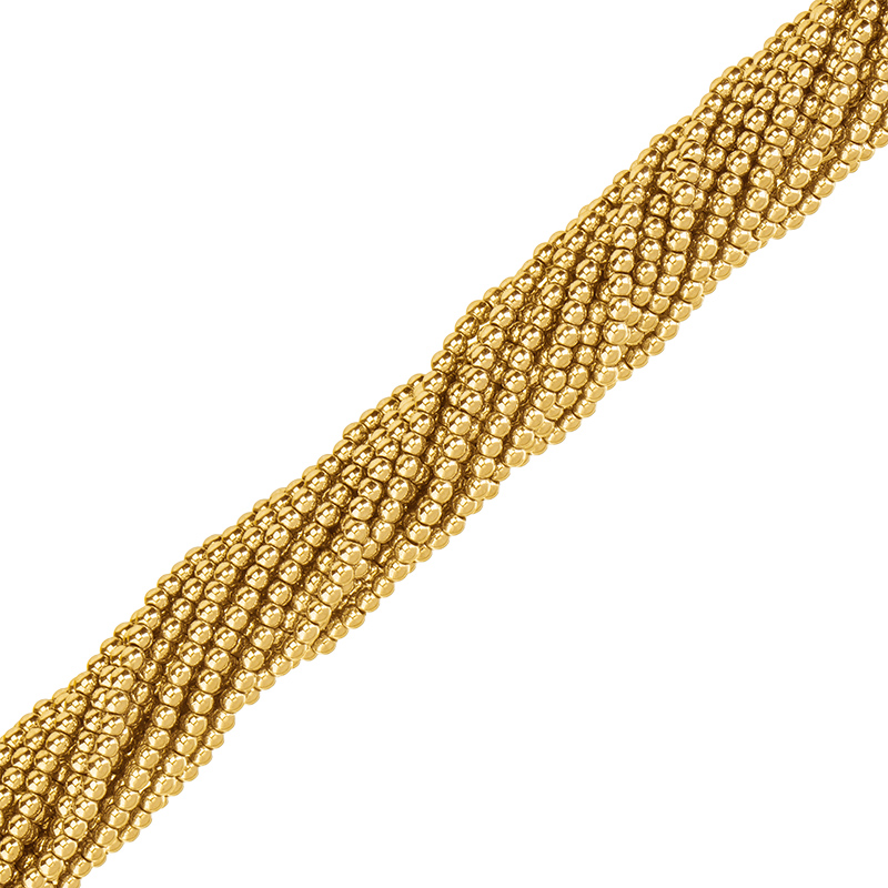 Из-за особенностей нанесения цветного металлизированного покрытия в нитях может присутствовать склеенность некоторых бусин, неоднородность и пористость покрытия в местах соприкосновения бусин, а также небольшие потертости.