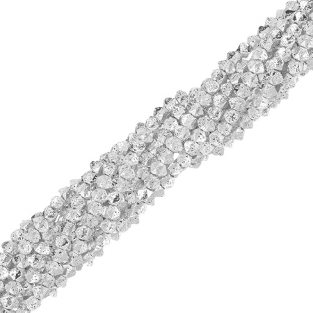 Бусины из геметина с гальваническим покрытием в форме многогранников. Бусины обладают неоднородной пористой структурой и могут незначительно различаться по размеру.