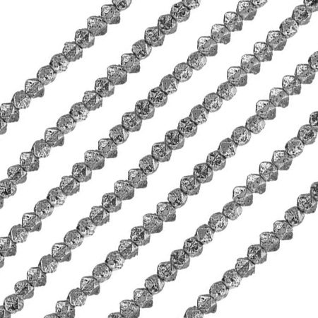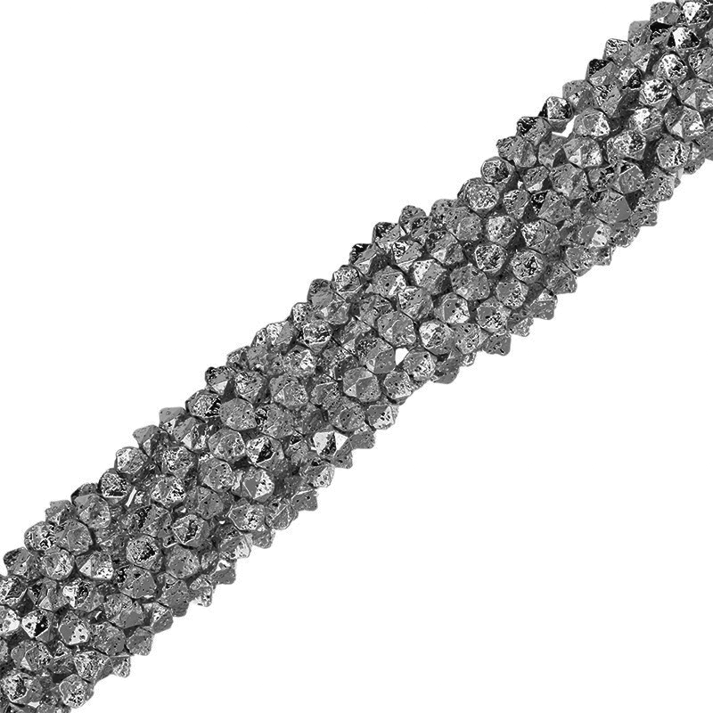 Бусины из геметина с гальваническим покрытием в форме многогранников. Бусины обладают неоднородной пористой структурой и могут незначительно различаться по размеру.