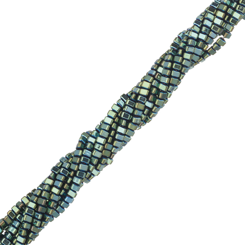 Из-за особенностей нанесения цветного металлизированного покрытия в нитях может присутствовать склеенность некоторых бусин, неоднородность и пористость покрытия в местах соприкосновения бусин, а также небольшие потертости.