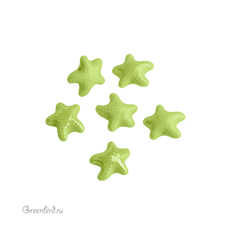 Бусина керамическая в форме морской звезды, глянцевая. Материал: керамика. Цвет: зеленый. Размер: примерно 17 х 20 мм, толщина: 10 мм, диаметр отверстия: 2,2 мм. Производство: Китай. Цена указана за 1 шт.