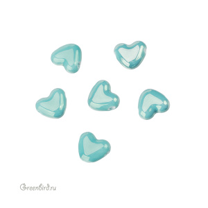 Бусина керамическая в форме сердца глянцевая с эффектом перламутра. Материал: керамика. Цвет: бирюзовый. Размер: 15 х 13 мм, толщина: 7 мм, диаметр отверстия: 1,8 мм. Производство: Китай. Цена указана за 1 шт.