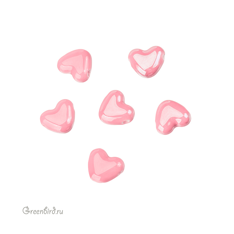 Бусина керамическая в форме сердца глянцевая с эффектом перламутра. Материал: керамика. Цвет: розовый. Размер: 15 х 13 мм, толщина: 7 мм, диаметр отверстия: 1,8 мм. Производство: Китай. Цена указана за 1 шт.