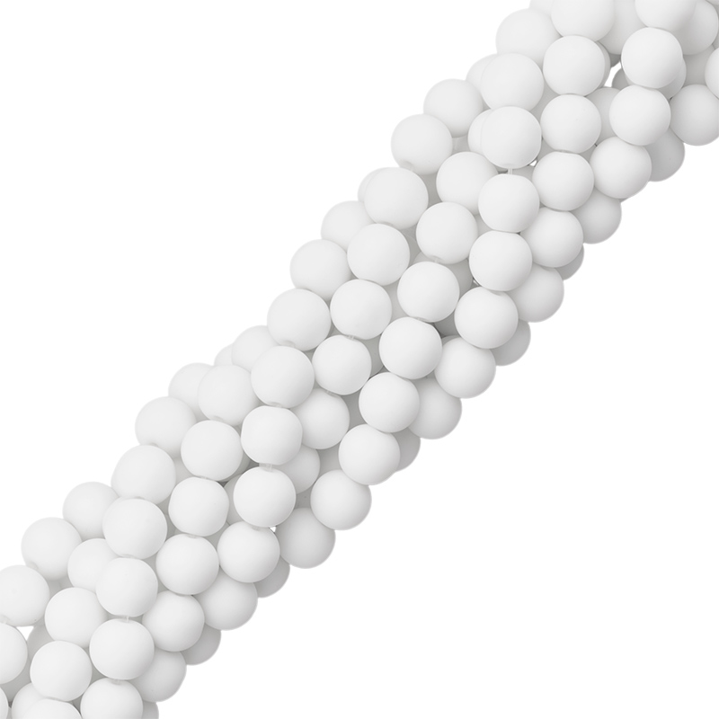 Бусины стеклянные круглые матовые. Фактура бусин визуально и тактильно идентична керамике или фарфору. Материал: стекло. Цвет: белый матовый. Размер: 10 мм, диаметр отверстия: 1 мм. Производство: Китай. Цена указана за нить (примерно 38 шт.).