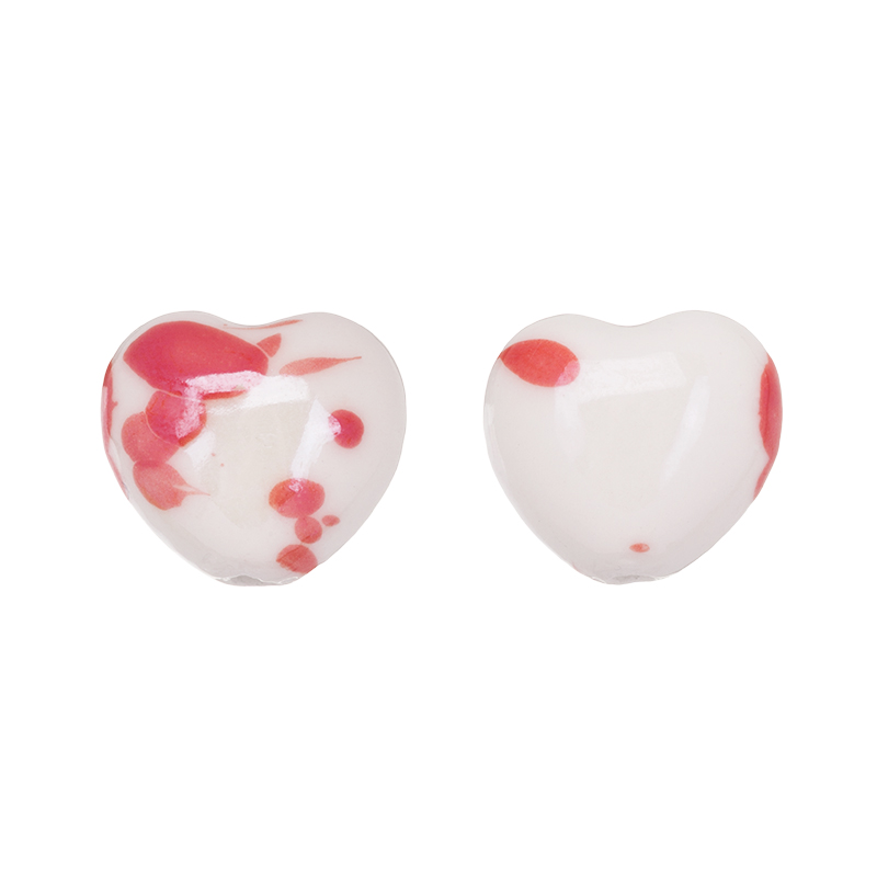 Бусина керамическая в форме сердца глянцевая с эффектом перламутра. Бусина окрашена с эффектом "далматин" или в крапинку. Материал: керамика. Цвет: белый, красный. Размер: 17 х 15 мм, толщина: 12 мм, диаметр отверстия: 1,8 мм. Производство: Китай. Цена указана за 1 шт. Вы получите бусину случайного окраса.