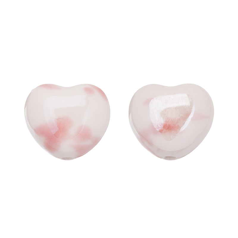 Бусина керамическая в форме сердца глянцевая с эффектом перламутра. Бусина окрашена с эффектом "далматин" или в крапинку. Материал: керамика. Цвет: белый, розовый. Размер: 17 х 15 мм, толщина: 12 мм, диаметр отверстия: 1,8 мм. Производство: Китай. Цена указана за 1 шт. Вы получите бусину случайного окраса.