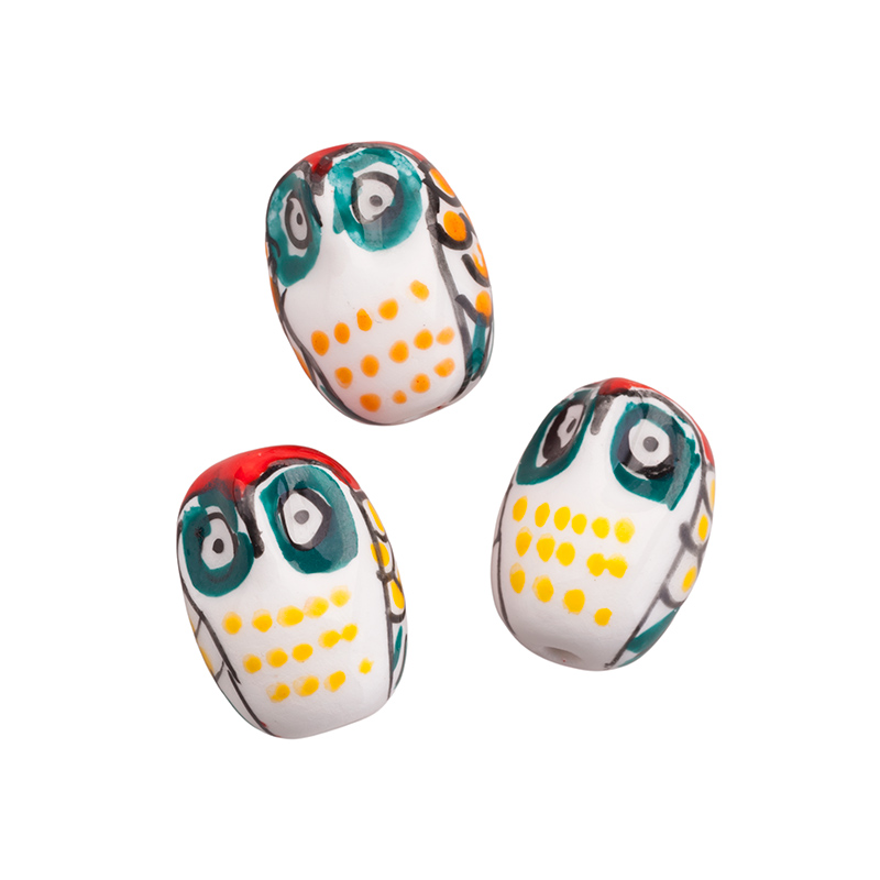 Бусина керамическая в форме совы. Материал: керамика. Цвет: красный. Размер: примерно 21 х 16 мм, диаметр отверстия: 3 мм. Производство: Китай. Цена указана за 1 шт. Вы получите бусину случайного окраса, рисунок нанесен не идентично.