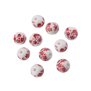 Бусина керамическая круглая с рисунком. Материал: керамика. Цвет: белый, красный. Размер: 10 x 9,5 мм, диаметр отверстия: 2,2 мм. Производство: Китай. Цена указана за упаковку 10 шт.