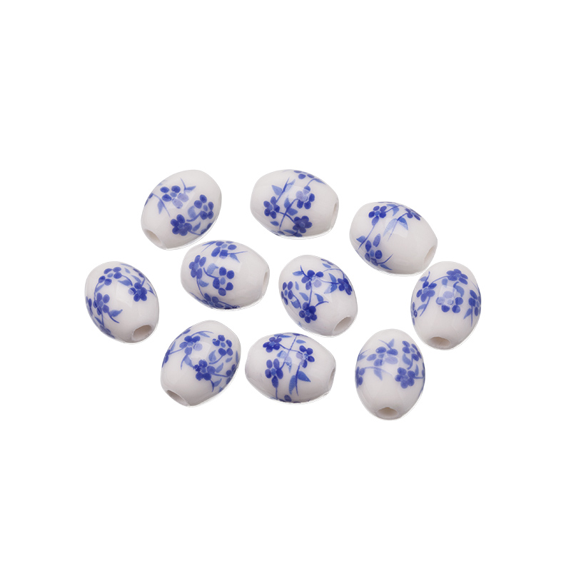 Бусина керамическая с рисунком, форма: вытянутая, овальная (рис). Материал: керамика. Цвет: белый, синий. Размер: 8,5 x 10 мм, диаметр отверстия: 2,2 мм. Производство: Китай. Цена указана за упаковку 10 шт.