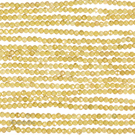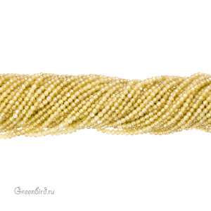 Бусины Циркон (фианит или кубический цирконий) ювелирной огранки. Материал: синтетический камень. Цвет: желтый (прозрачный). Размер: 2 х 1,9 мм, диаметр отверстия: 0,5 мм. Производство: Китай. Цена указана за нить 37-38 см (примерно 204 штуки).