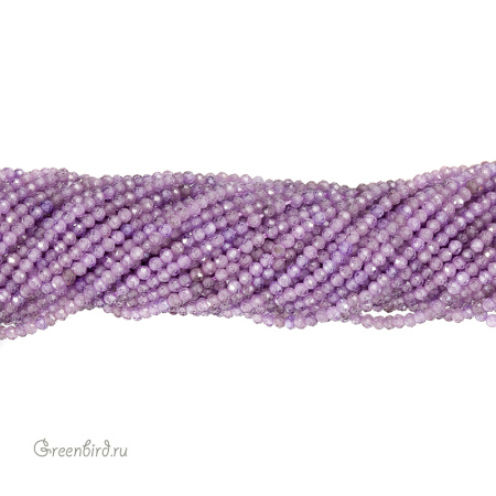 Бусины Циркон (фианит или кубический цирконий) ювелирной огранки. Материал: синтетический камень. Цвет: светло-фиолетовый микс (прозрачный). Размер: 2 х 1,9 мм, диаметр отверстия: 0,5 мм. Производство: Китай. Цена указана за нить 37-38 см (примерно 204 штуки).