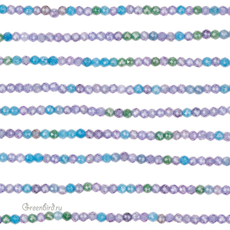 Бусины Циркон (фианит или кубический цирконий) ювелирной огранки. Материал: синтетический камень. Цвет: сиренево-голубой микс (прозрачный). Размер: 3 мм, диаметр отверстия: 0,5 мм. Производство: Китай. Цена указана за нить 37-38 см (примерно 125-128 штуки).