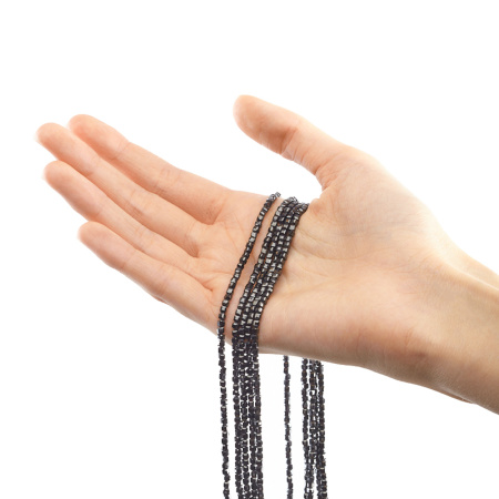 Бусины Циркон (фианит или кубический цирконий) ювелирной огранки в форме куба. Материал: синтетический камень. Цвет: темно-серый. Размер: 2,5 мм, диаметр отверстия: 0,5 мм. Производство: Китай. Цена указана за нить 37-38 см (примерно 146-150 штук).