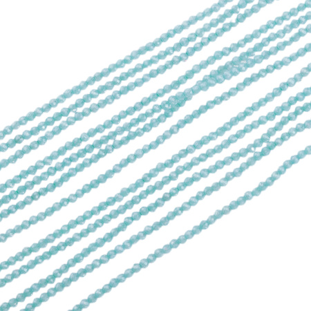 Бусины Циркон (фианит или кубический цирконий) ювелирной огранки. Материал: синтетический камень. Цвет: бирюзовый. Размер: 2 мм, диаметр отверстия: 0,5 мм. Производство: Китай. Цена указана за нить 37-38 см (примерно 188-190 штук).