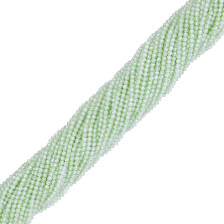 Бусины Циркон (фианит или кубический цирконий) ювелирной огранки. Материал: синтетический камень. Цвет: зеленый. Размер: примерно 2 мм, диаметр отверстия: 0,5 мм. Производство: Китай. Цена указана за нить 37-38 см (примерно 190 штук).