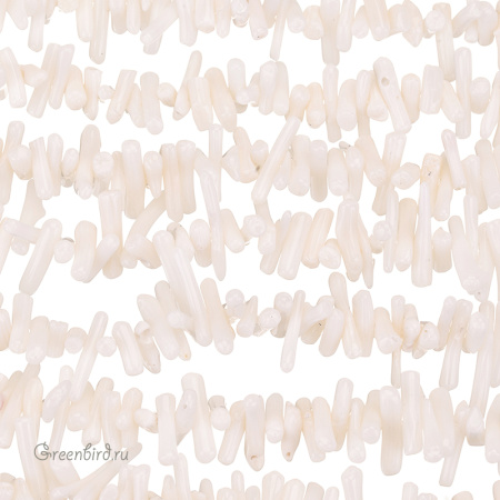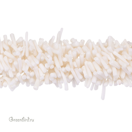Коралл натуральный, необработанный - мелкие кусочки, по форме напоминающие неоднородные палочки. Размер примерно от 5 мм до 19 мм, толщина примерно от 1,8 до 3,5 мм, отверстие: 0,6 мм. Цвет: белый. Цена указана за нить 39-40 см.