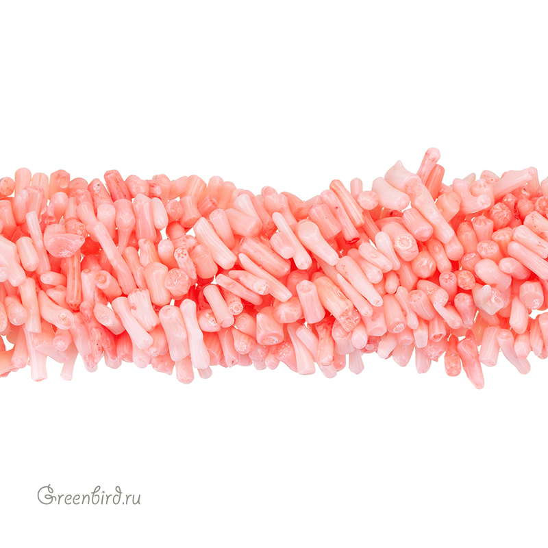 Коралл натуральный, окрашенный, необработанный - мелкие кусочки, по форме напоминающие неоднородные палочки. Размер примерно от 5 мм до 19 мм, толщина примерно от 1,8 до 3,5 мм, отверстие: 0,6 мм. Цвет: розово-персиковый. Цена указана за нить 39-40 см.