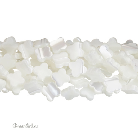 Бусины из натурального перламутра в форме клевера. Цвет: жемчужно-белый или рисовый с переливами. Возможны небольшие неровности и царапины естественного происхождения. Размер: примерно 8,2 мм, толщина: от 2,3 до 2,5 мм, отверстие: 0,6 - 0,7 мм. Из-за особенностей материала бусины незначительно отличаются по рисунку, вы получите бусину случайного вида. Цена указана за 1 шт.
