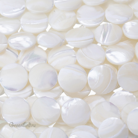 Бусины из натурального перламутра в форме круга, плоского диска или таблетки. Цвет: жемчужно-белый или рисовый с переливами, с белыми прожилками и вкраплениями. Возможны небольшие неровности и царапины естественного происхождения. Размер: примерно 18,3 мм, толщина: от 3,8 до 4,5 мм, отверстие: 0,9 мм. Из-за особенностей материала бусины отличаются по рисунку, вы получите бусину случайного вида. Цена указана за 1 шт.