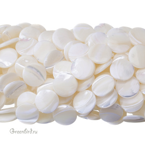 Бусины из натурального перламутра в форме круга, плоского диска или таблетки. Цвет: жемчужно-белый или рисовый с переливами, с белыми прожилками и вкраплениями. Возможны небольшие неровности и царапины естественного происхождения. Размер: примерно 18,3 мм, толщина: от 3,8 до 4,5 мм, отверстие: 0,9 мм. Из-за особенностей материала бусины отличаются по рисунку, вы получите бусину случайного вида. Цена указана за 1 шт.