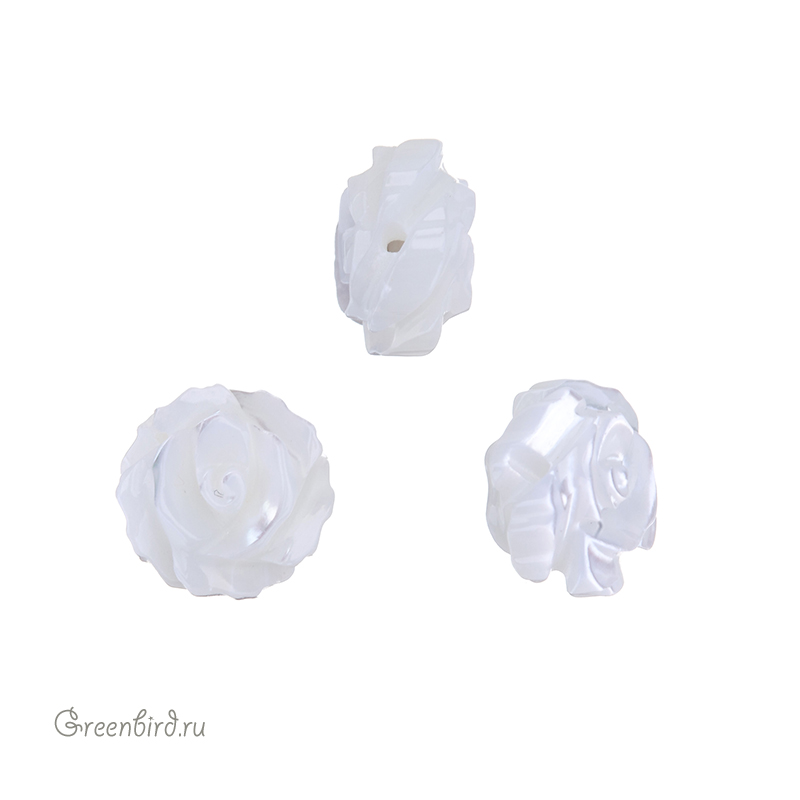 Бусина-роза из натурального перламутра. Цвет: жемчужно-белый или рисовый с переливами. Размер: примерно 8 мм, толщина: примерно 5 мм, отверстие: 0,6 - 0,8 мм. Цена указана за 1 шт.