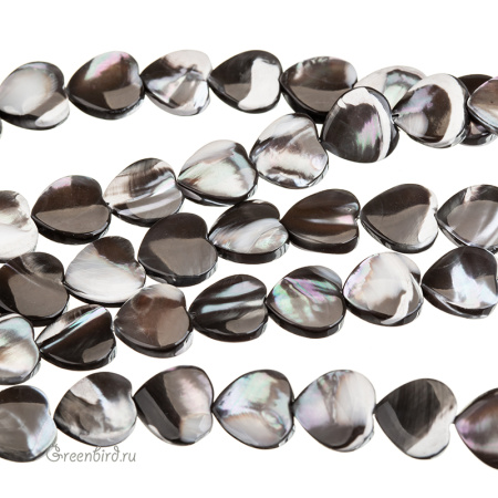 Бусины из натурального перламутра в форме сердца. Цвет: серо-черный с зеленовато-розовыми переливами, с белыми прожилками и вкраплениями. Возможны небольшие неровности и царапины естественного происхождения. Размер: примерно 10,2 мм, толщина: от 2,3 до 3,8 мм, отверстие: 0,6 мм. Из-за особенностей материала бусины отличаются по рисунку, вы получите бусину случайного вида. Цена указана за 1 шт.
