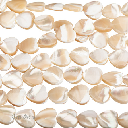 Бусины из натурального перламутра в форме сердца. Цвет: кофейный, крем-брюле с переливами, с белыми прожилками и вкраплениями. Возможны небольшие неровности и царапины естественного происхождения. Размер: примерно 10,2 мм, толщина: от 2,3 до 3,8 мм, отверстие: 0,6 мм. Из-за особенностей материала бусины незначительно отличаются по рисунку, вы получите бусину случайного вида. Цена указана за 1 шт.