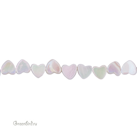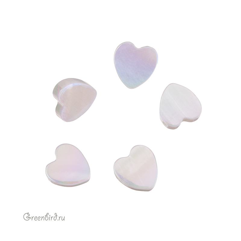 Бусина-сердечко из натурального перламутра. Цвет: белый радужный. Размер: примерно 8,5 x 8,5 мм, толщина: примерно 2,6 мм, отверстие: 0,6 мм. Цена указана за 1 шт.