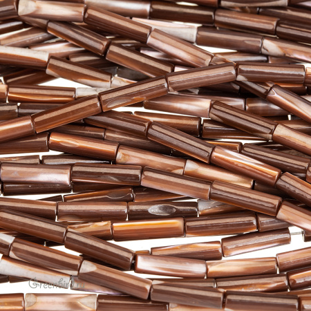 Бусины из натурального перламутра в форме трубочек. Цвет: коричневый с переливами. Размер: 14 х 4 мм, отверстие: 0,7 мм. Обратите внимание: из-за природных особенностей материала размеры и оттенки бусин могут незначительно отличаться. Так же возможны неровности на краях и поверхности бусин, которые могут выглядеть как сколы или вмятины. Такие эффекты не считаются браком и являются прямым следствием природного происхождения исходного материала (эти бусины сделаны из раковин моллюсков). Цена указана за нить (примерно 29 штук).