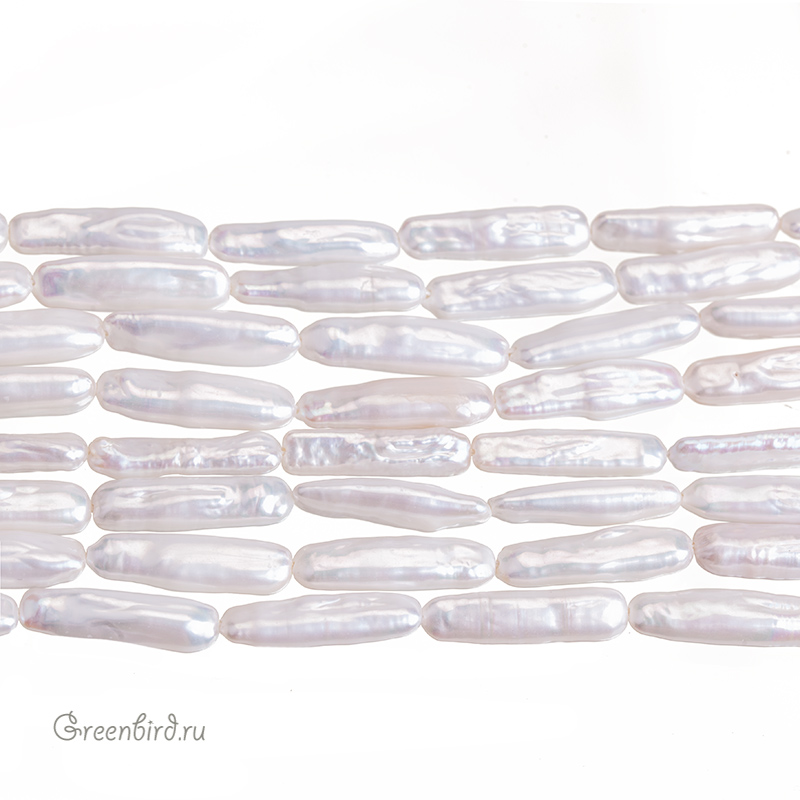 Жемчуг пресноводный культивированный (выращенный). Барочный жемчуг прямоугольной формы на основе плоских заготовок из пресованного перламутра, имеет неровности и наплывы, отверстие расположено вдоль бусины. Средние размеры: длина от 22 до 24 мм, ширина примерно от 5,6 до 7 мм, толщина различается по всей длине бусины - от 3 до 5,5 мм . Цвет: натуральный жемчужный белый. Жемчужины незначительно отличаются по форме и размеру, при заказе вы получите жемчужину случайной формы. Производство: Китай. Цена указана за 1 шт.