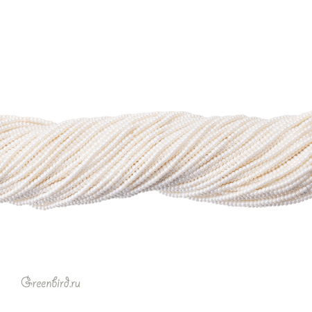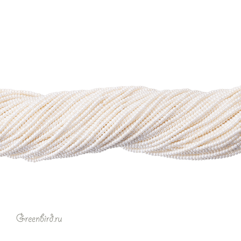 Искусственный жемчуг "Майорка". Классическая форма, сплюснутый вдоль отверстия. Материал: кристальная бусина-основа, покрытая цветным слоем. Размер: 2 х 1,5 мм, отверстие: 0,5 мм. Цвет: молочный, светло-кремовый, топленое молоко. Размеры жемчужин могут незначительно отличаться. Цена указана за нить 33 см (примерно 242 штуки).