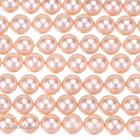 Искусственный жемчуг "Майорка". Форма - классическая круглая. Материал: кристальная бусина-основа, покрытая цветным слоем. Размер: 8 мм, отверстие: 0,7 мм. Цвет: персиковый. Цена указана за нить 39-40 см (примерно 48 штук).