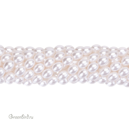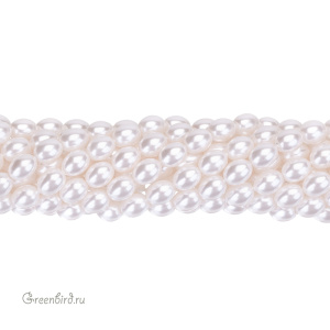 Искусственный жемчуг "Майорка" в форме риса. Жемчуг овальной или удлиненной формы, вытянутый вдоль отверстия. Материал: кристальная бусина-основа, покрытая цветным слоем. Размер: 8 х 6 мм, отверстие: 0,7 мм. Цвет: белый, розовато-кремовый. Цена указана за нить 39-40 см (примерно 50 штук).