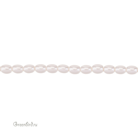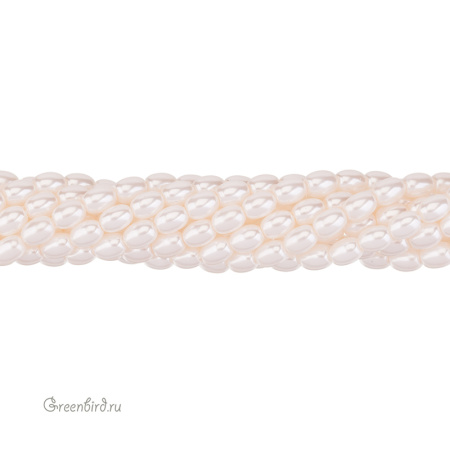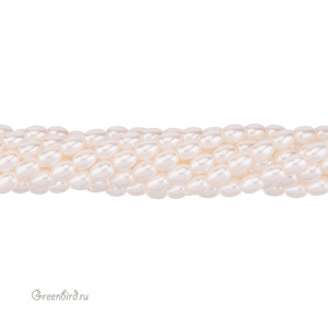 Искусственный жемчуг "Майорка" в форме риса. Жемчуг овальной или удлиненной формы, вытянутый вдоль отверстия. Материал: кристальная бусина-основа, покрытая цветным слоем. Цвет: белый, розовато-кремовый. Размер: 7 - 7,3 х 5,5 мм, отверстие: 0,6 мм. Цена указана за нить 37-39 см (примерно 54 штуки).