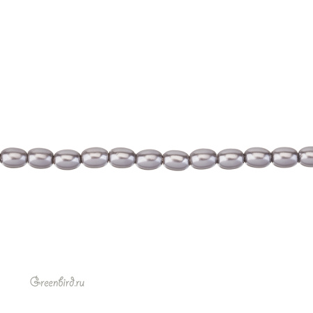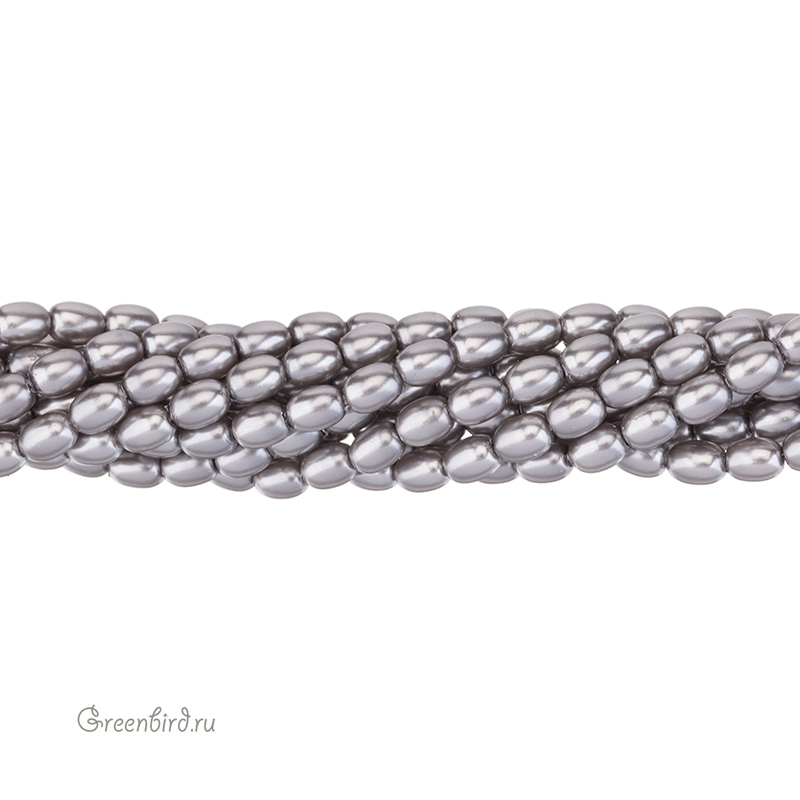 Искусственный жемчуг "Майорка" в форме риса. Жемчуг овальной или удлиненной формы, вытянутый вдоль отверстия. Материал: кристальная бусина-основа, покрытая цветным слоем. Цвет: серый. Размер: 7 - 7,3 х 5,5 мм, отверстие: 0,6 мм. Цена указана за нить 37-39 см (примерно 54 штуки).