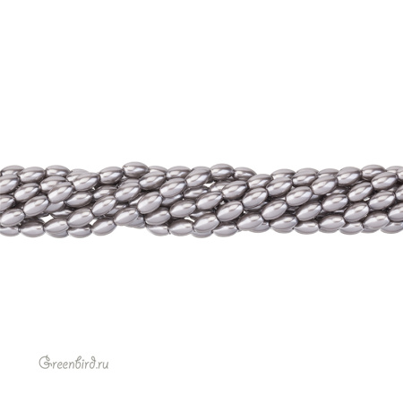 Искусственный жемчуг "Майорка" в форме риса. Жемчуг овальной или удлиненной формы, вытянутый вдоль отверстия. Материал: кристальная бусина-основа, покрытая цветным слоем. Цвет: серый. Размер: 6 x 4 мм, отверстие: 0,6 мм. Цена указана за нить 37-39 см (примерно 54 штуки).