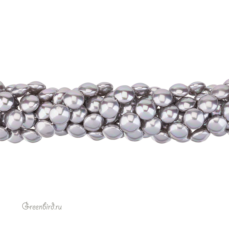 Искусственный жемчуг "Майорка". Форма - круглая плоская, "таблетка". Материал: кристальная бусина-основа, покрытая цветным слоем. Размер: 12 x 12 мм, толщина: 8 мм, отверстие: 1 мм. Цвет: серый. Цена указана за нить 37-39 см (примерно 30-34 штуки).