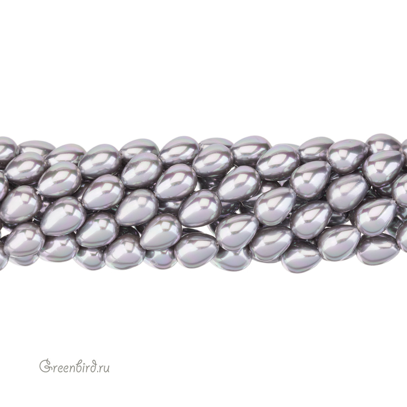 Искусственный жемчуг "Майорка". Форма - капля. Материал: кристальная бусина-основа, покрытая цветным слоем. Размер: 15-16 мм, толщина: 12 мм, отверстие: 1 мм. Цвет: серый. Цена указана за нить 37-39 см (примерно 26 штук).