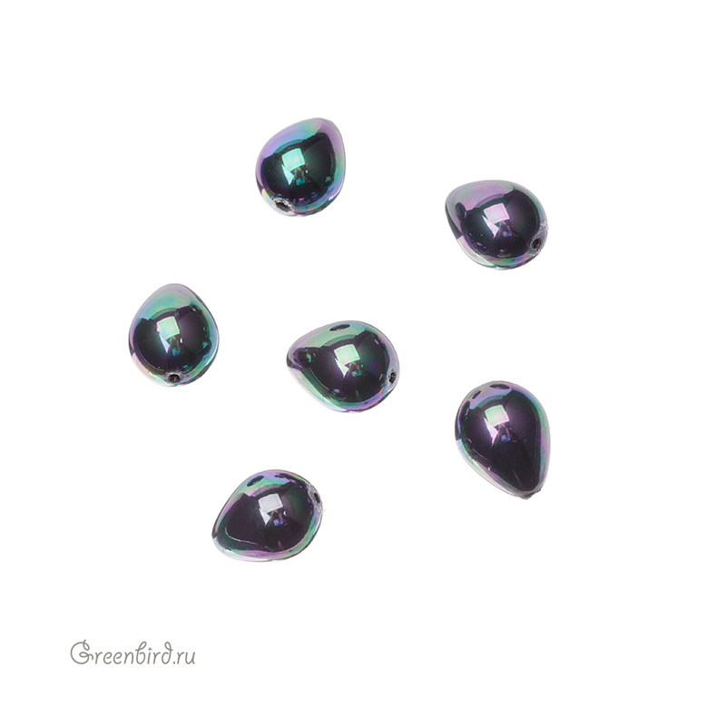 Искусственный жемчуг "Майорка". Форма - капля. Материал: кристальная бусина-основа, покрытая цветным слоем. Размер: 15-16 мм, толщина: 12 мм, отверстие: 1 мм. Цвет: черный с переливающимся покрытием. Цена указана за 1 шт.