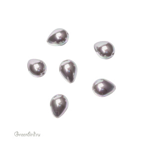 Искусственный жемчуг "Майорка". Форма - капля. Материал: кристальная бусина-основа, покрытая цветным слоем. Размер: 15-16 мм, толщина: 12 мм, отверстие: 1 мм. Цвет: серый. Цена указана за 1 шт.