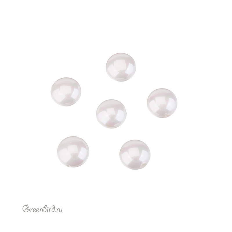 Искусственный жемчуг "Майорка". Форма - круглая плоская, "таблетка". Материал: кристальная бусина-основа, покрытая цветным слоем. Размер: 12 x 12 мм, толщина: 8 мм, отверстие: 1 мм. Цвет: белый. Цена указана за 1 шт.