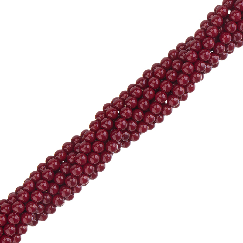 Искусственный жемчуг "Майорка". Форма - классическая круглая. Материал: кристальная бусина-основа, покрытая цветным слоем. Размер: примерно 4 мм, отверстие: 0,5 мм. Цвет: гранатовый. Цена указана за нить 39-40 см (примерно 95 штук).