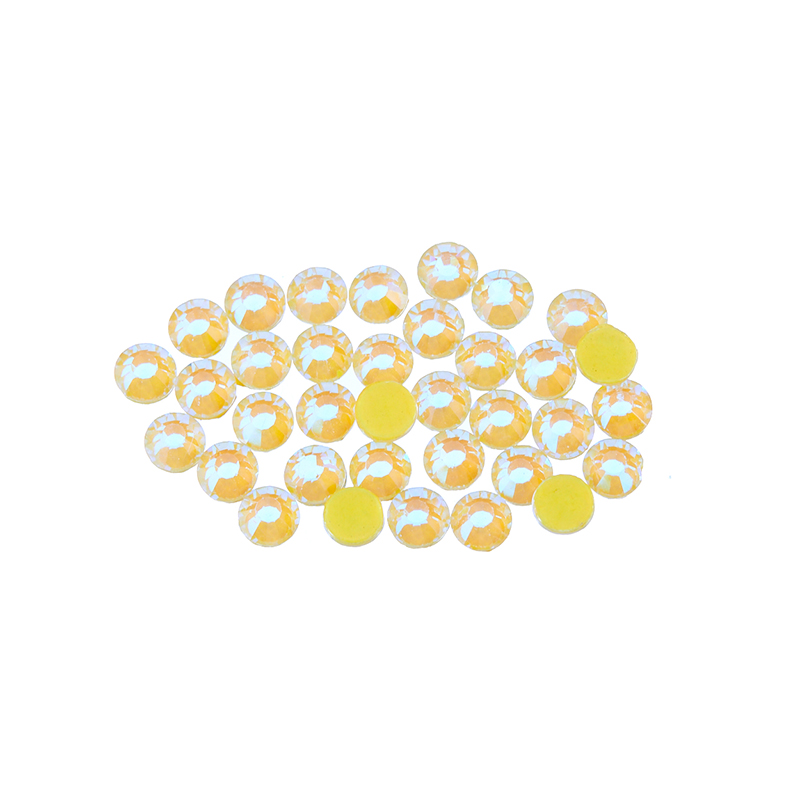 Crystalbird Flatback HotFix — кристалл с плоским основанием горячей фиксации (термоклеевой страз). Форма: круглая. Размер: SS16 (4 мм). Цвет: прозрачный на подложке солнечного цвета c эффектом делайт без фольги / Crystal Sunshine DeLite Unfoiled (#Y141D). Материал: стекло. Производство: Китай. Цена указана за 36 шт.