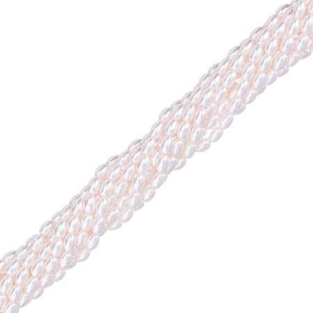 Жемчуг Crystalbird, овальной или удлиненной формы, вытянутый вдоль отверстия. Материал: стеклянная бусина-основа, покрытая цветным слоем. Размер: примерно 4 x 6 мм, отверстие: 0,8 мм. Цвет: Cream Rose Light (#89). Цена указана за нить 38-39 см.