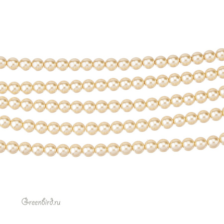 Жемчуг Crystalbird, круглой формы. Материал: стеклянная бусина-основа, покрытая цветным слоем. Размер: примерно 6 мм, отверстие: 0,8 мм. Цвет: Light Gold (#33). Цена указана за нить 38-39 см.