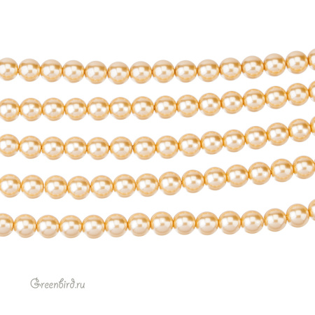 Жемчуг Crystalbird, круглой формы. Материал: стеклянная бусина-основа, покрытая цветным слоем. Размер:примерно 8 мм, отверстие: 0,8 мм. Цвет: Gold (#27). Цена указана за нить 38-39 см.