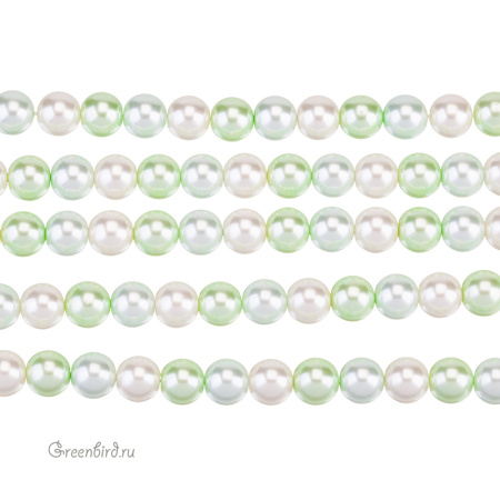 Жемчуг Crystalbird, круглой формы. Материал: стеклянная бусина-основа, покрытая цветным слоем. Размер: примерно 10 мм, отверстие: 0,8 мм. Цвет: Cream Light/Green (#MIX02). Цена указана за нить 38-39 см.