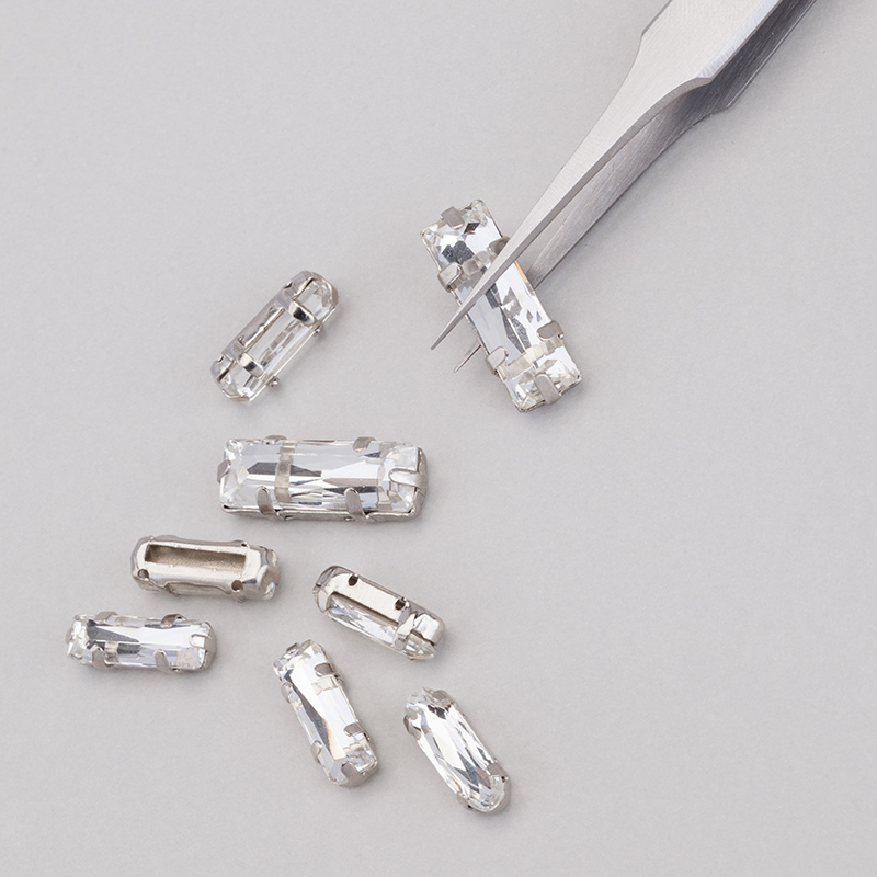 Микс кристаллов в оправе Crystalbird – 4547C Princess Baguette и 4161C Long Classical Oval. Компоненты для бижутерии хобби качества.