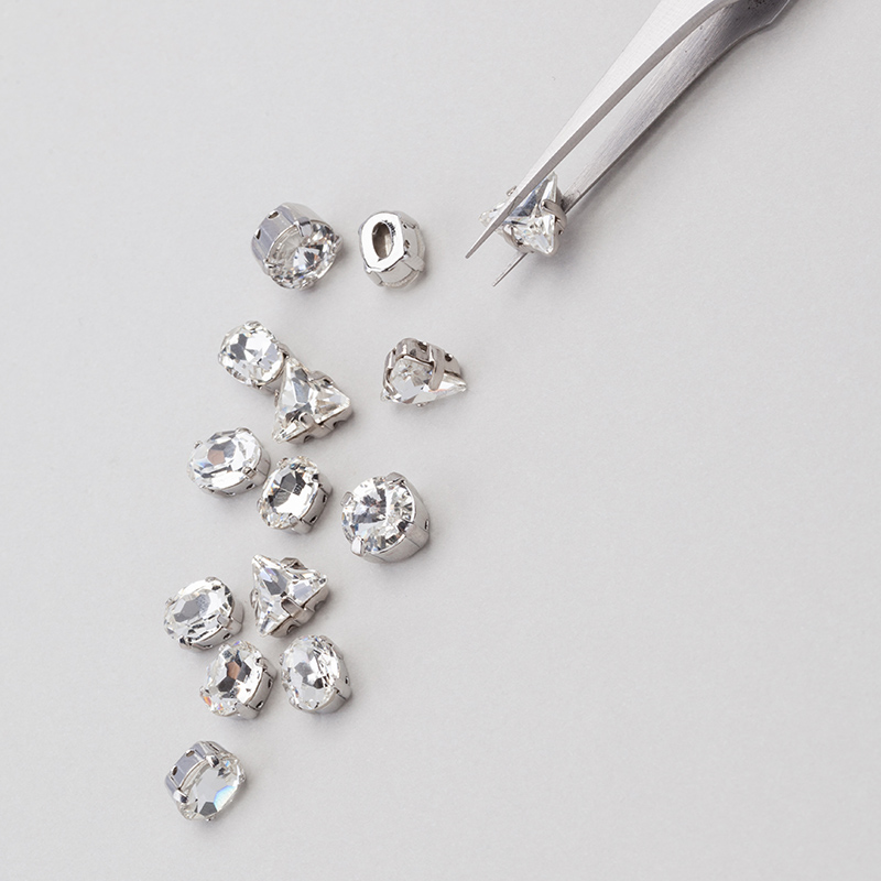 Микс кристаллов в оправе Crystalbird – микс форм 1122C Rivoli, 4120C Oval, 4722C Triangle Fancy Stone. Компоненты для бижутерии хобби качества.