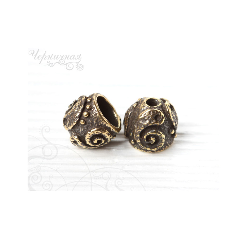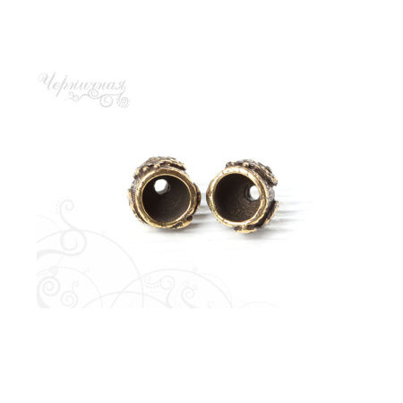 Авторская фурнитура Анны Черных - концевик для вклейки шнуров или лент. Размер: 12,2 х 10,3 мм, внутренний диаметр примерно 7,7 мм, отверстие: 2,2 мм. Материал: античная латунь. Производство: Россия. Цена указана за 1 шт.